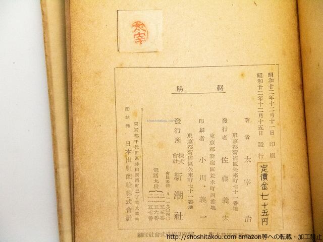 斜陽 初版 (昭和22年・元版・白表紙) / 太宰治 [38569][難]