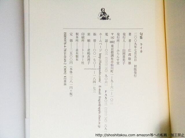 2009 ( 平成21年 ) ふらんす堂 四六判 第二句集 (目録番号:-)