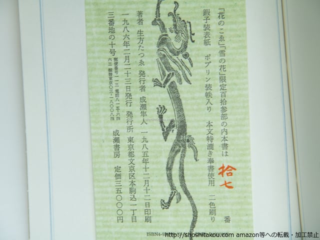 1986 ( 昭和61年 ) 限定113部記番・ボール函・函カバー・帙・二冊組・毛筆歌署名落款入 カバそでに折れ 成瀬書房 A5判 美(極美・美・良好・並・並下・難) (目録番号:-)