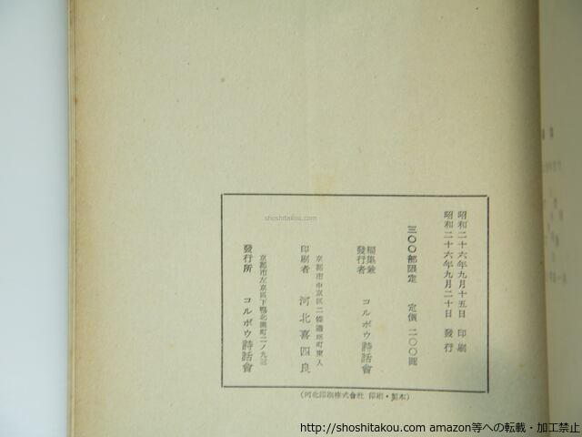 1951 ( 昭和26年 ) コルボウ詩話会 A5判 天野大虹装(天野隆一) 天野忠跋 (目録番号:-)