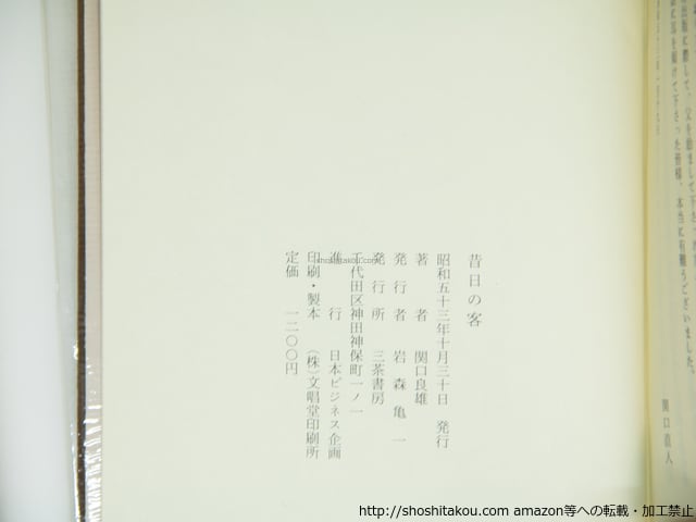 昔日の客 初版 / 関口良雄 山高登木版口絵入 [39267][良好]