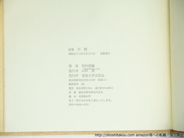 詩集 行雲 署名入 / 更科源蔵 [39281][並]