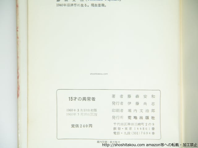 15才の異常者 藤森安和詩集 / 藤森安和 大倉舜二写真 鮎川信夫解説 [39346][並]
