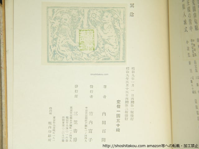 1934 ( 昭和9年 ) 再厥第二版・函・背コーネル革五段マウント装天銀染 函少ヤケ 革部イタミ有 見返札跡 三笠書房 四六判 並(極美・美・良好・並・並下・難) (目録番号:-)