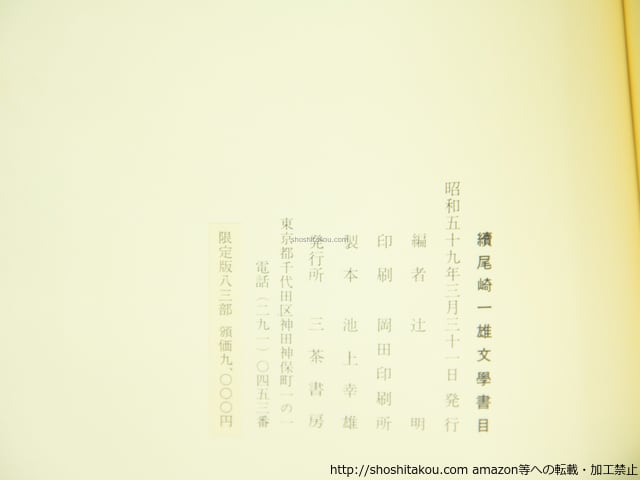 尾崎一雄 続文学書目 限定版83部 / 辻明 編 [39382][良好]
