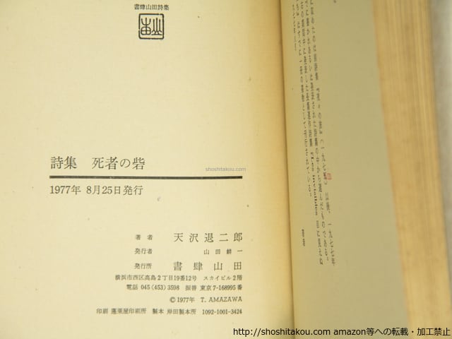 1977 ( 昭和52年 ) 初版・函・著者及装丁者連名署名入(著者とともに暴走・バッテン・凶区などで同人であった藤田治宛) 函ヤケ 小口小シミ 書肆山田 四六判 良好(極美・美・良好・並・並下・難) (目録番号:-)