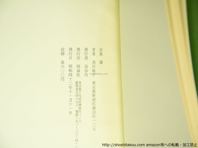 ![藤 高田敏子詩集 献呈署名入 / 高田敏子 [39431][良好]](https://baseec-img-mng.akamaized.net/images/item/origin/fa9d7e4bd47f835f83138f9201e19d29.jpg?imformat=generic)