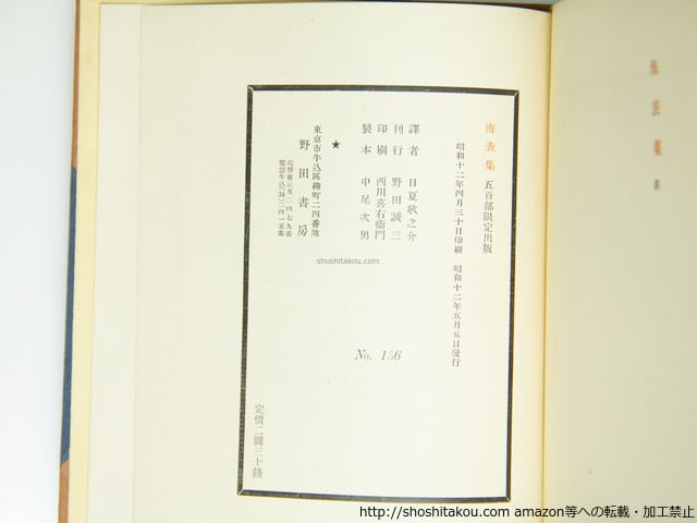 1937 ( 昭和12年 ) 限定500部番号刷込・函・天金・背コーネル革五段マウント装 革部に少剥 p177に少インク汚 天金少剥落 野田書房 A5判 良好(極美・美・良好・並・並下・難) (目録番号:-)