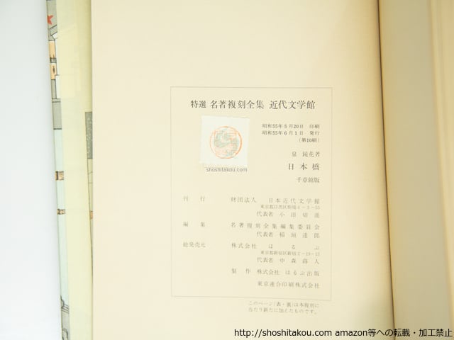 ![日本橋 復刻版 (特選名著複刻全集近代文学館) / 泉鏡花 小村雪岱装 [39441][並]](https://baseec-img-mng.akamaized.net/images/item/origin/88ee80113fdf8949574e7e5873428bd1.jpg?imformat=generic)
