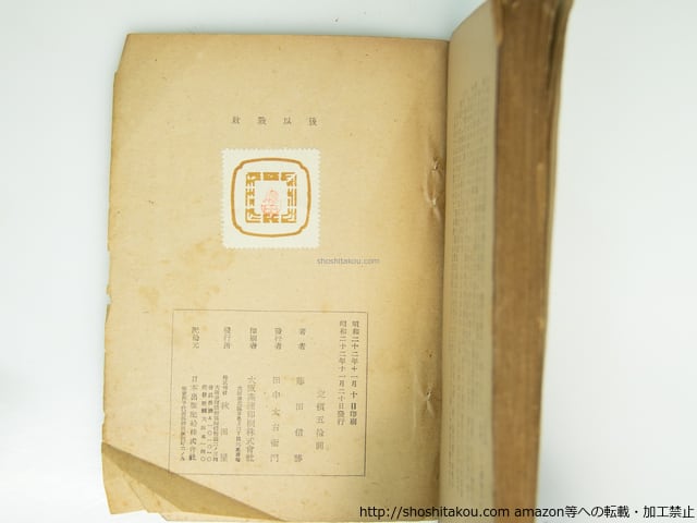 1947 ( 昭和22年 ) 初版・扉に毛筆署名箋貼「謹呈 読売新聞文化部長殿 著者」(読売新聞副社長も務めた原四郎旧蔵本) 背に部分欠損 うら表紙イタミ 扉に耳有 秋田屋 四六判 並(極美・美・良好・並・並下・難) (目録番号:-)