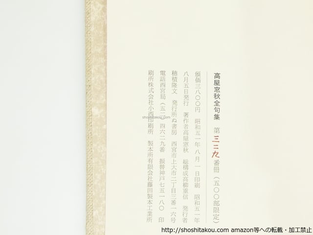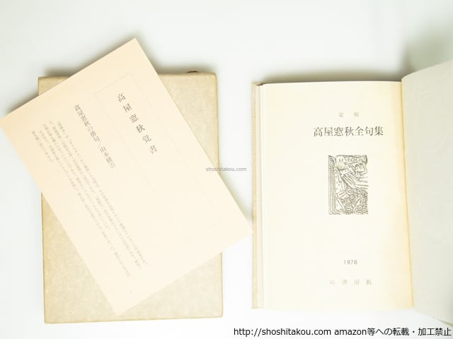 1976 ( 昭和51年 ) 限定500部記番・函・背革布ヒラ装・「高屋窓秋覚書」付 函背少凹み 背革少スレ ぬ書房 A5判 高柳重信構成 (検:高屋窓秋俳句集成) 良好(極美・美・良好・並・並下・難) (目録番号:-)