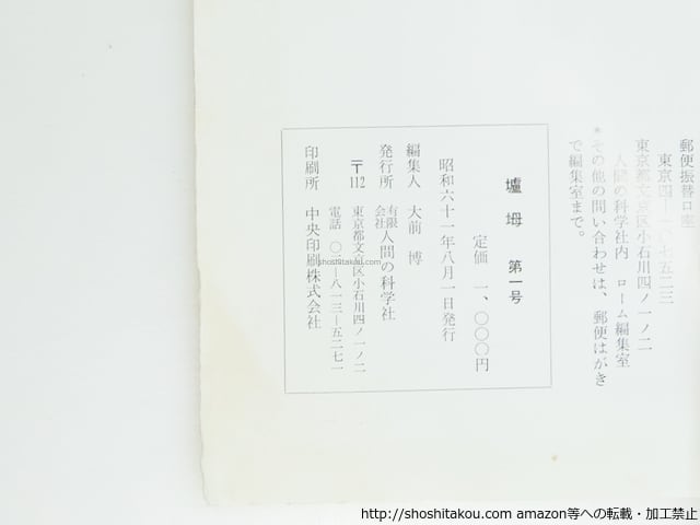 1986-1994 ( 昭和61-平成6年 ) 創刊号に難有(強いシミ、口絵欠損、数枚小穴、可読) 2・3号三方シミ 6・7・8・10・11・14号欠 人間の科学社・ローム館 A5判 並(極美・美・良好・並・並下・難) (目録番号:-)