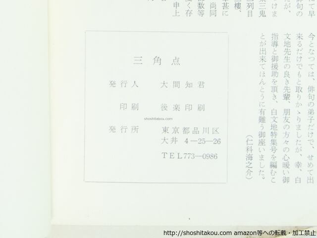 ![(雑誌)三角点 16・17・18・36・37・73・86・89号 8冊 / 三谷昭 平畑静塔 他 [39534][並]](https://baseec-img-mng.akamaized.net/images/item/origin/9e59fc0424de31c792b8b85698ed774f.jpg?imformat=generic&q=90&im=Resize,width=300,type=normal)