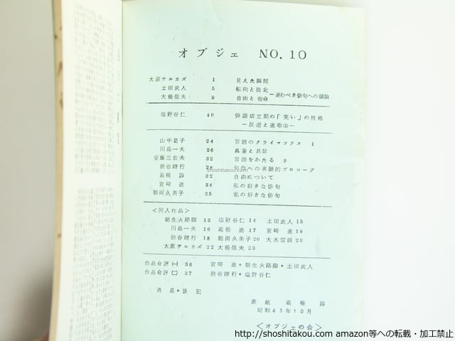 (雑誌)オブジェ 10号 / 大原テルカズ 他 朝生火路獅発行 [39535][並]