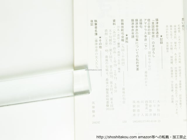 1997 ( 平成9年 ) 豈の会 B5判 184p 攝津幸彦アルバム 未公表句6句 思い出1(加藤郁乎安井浩司佐佐木幸綱小池光他) 思い出2(高柳蕗子大屋達治藤原龍一郎林桂他) 思い出3(倉阪鬼一郎池田澄子他) 思い出4(正木ゆう子中原道夫高山れおな筑紫磐井他) 他年譜等 良好(極美・美・良好・並・並下・難) (目録番号:-)