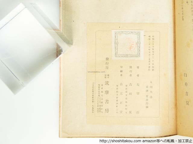 1948 ( 昭和23年 ) 初版 仙花紙本なりのヤケシミ・背にクセ・少キズ 筑摩書房 四六判 並(極美・美・良好・並・並下・難) (目録番号:-)