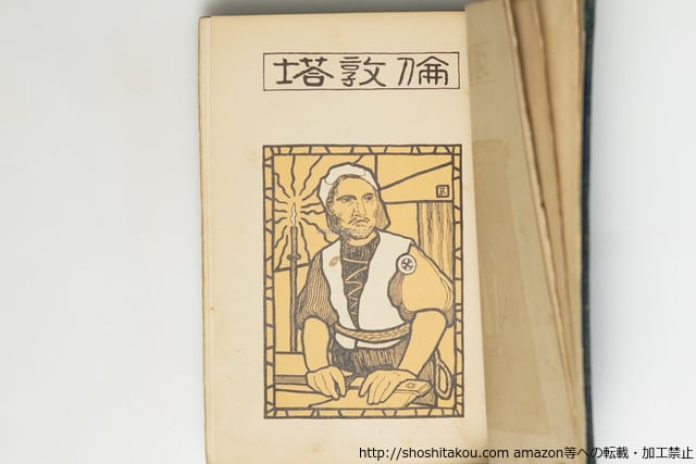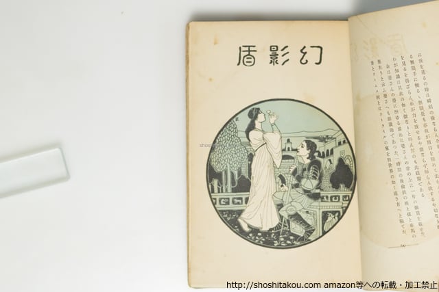 1906 ( 明治39年 ) 再版・裸本・天金布装 中村不折及橋口五葉多色扉絵・挿絵14葉揃・カット多数 P34端キレ 見返日付記入 題箋イタミ 背ヤケイタミ 広告に少数字記入 大倉書店 A5判 「倫敦塔/加来留博物館(カーライル博物館)/幻影之盾(幻影の盾)/琴之空音(琴のそら音)/一夜/薤露行/趣味之遺伝(趣味の遺伝)」各篇に扉絵一葉・挿絵一葉入(石版・木版)、各タイトルカット一点(印刷) 第二作品集 並下(極美・美・良好・並・並下・難) (目録番号:-)