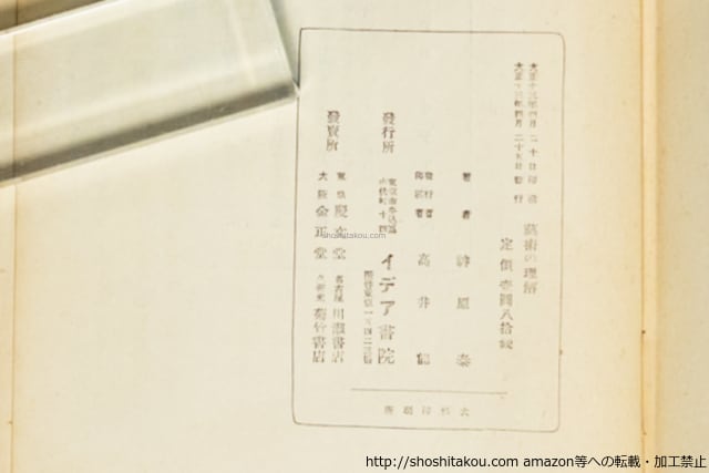 1924 ( 大正13年 ) 初版・裸本 見返書込 背ヤケ イデア書院 四六判 (検:藝術の理解) 並(極美・美・良好・並・並下・難) (目録番号:-)