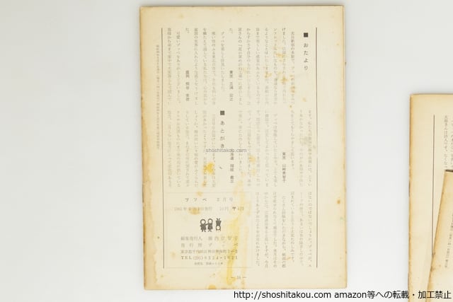![(雑誌)プッペ 創刊号-6号 6冊 / 堀内位智子 編発行 岸田衿子黒田三郎小笠原豊樹伊達得夫茨木のり子高田敏子石垣りん立原えりか他 [39619][並]](https://baseec-img-mng.akamaized.net/images/item/origin/461280c90fbf79fde58e3e1279c2d1cf.jpg?imformat=generic)