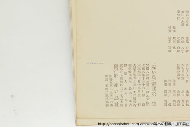 ![「赤い鳥」童謠 全8集内7冊 / 鈴木三重吉 編 北原白秋 西條八十 他 [39633][並下]](https://baseec-img-mng.akamaized.net/images/item/origin/c978807cae881fca8f42b94195fa17a0.jpg?imformat=generic)