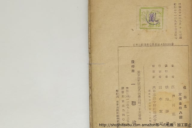 1946 ( 昭和21年 ) 初版(戦後版・仙花紙本) イタミ強し 見返鉛筆書込 一聯社 四六判 難(極美・美・良好・並・並下・難) (目録番号:-)