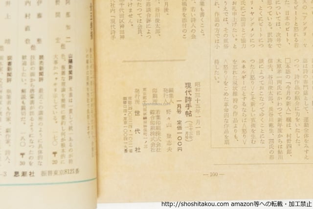 (雑誌)現代詩手帖 第3巻第1号 特集ビート・ジェネレーション、アングリ・ヤングメン / 諏訪優 藤富保男 北園克衛 黒田三郎 吉本隆明 他 [39722][良好]