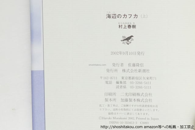 ![海辺のカフカ 上下揃 初カバ帯 / 村上春樹 [39731][良好]](https://baseec-img-mng.akamaized.net/images/item/origin/bfe7da367e5c03f690c9401ee9381468.jpg?imformat=generic)