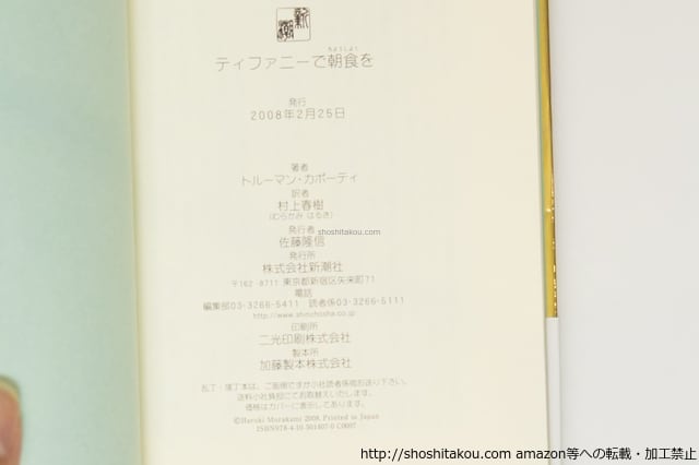 ![ティファニーで朝食を 初カバ帯 / トルーマン・カポーティ 村上春樹 訳 [39740][良好]](https://baseec-img-mng.akamaized.net/images/item/origin/ac6dbab456e2fa33c6368e1038a4b555.jpg?imformat=generic)