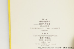 1967 ( 昭和42年 ) 初版330部・ペーパーバック装 スレ 三方ヤケ 季節社 四六判 元より裸本 H氏賞 並(極美・美・良好・並・並下・難) (目録番号:-)