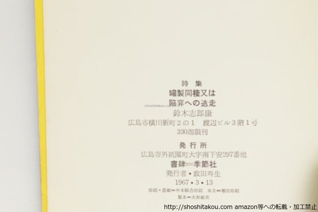 ![罐製同棲又は陥穽への逃走 鈴木志郎康詩集 / 鈴木志郎康 鈴木悦子・矢部光徳装 [39783][並]](https://baseec-img-mng.akamaized.net/images/item/origin/095df3c5489f2825771f51fff407be43.jpg?imformat=generic)