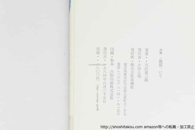 ![<地獄>にて 天澤退二郎詩集 鈴木志郎康宛署名入 / 天沢退二郎 [39816][並]](https://baseec-img-mng.akamaized.net/images/item/origin/f5ca3ef533f7a90570ae7d86b9c12c4f.jpg?imformat=generic)