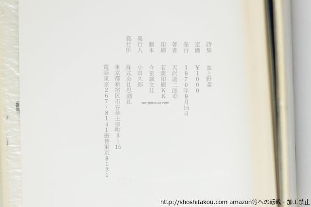 1970 ( 昭和45年 ) 初版・函・鈴木志郎康宛署名入 函天埃シミ 思潮社 A5判 良好(極美・美・良好・並・並下・難) (目録番号:-)