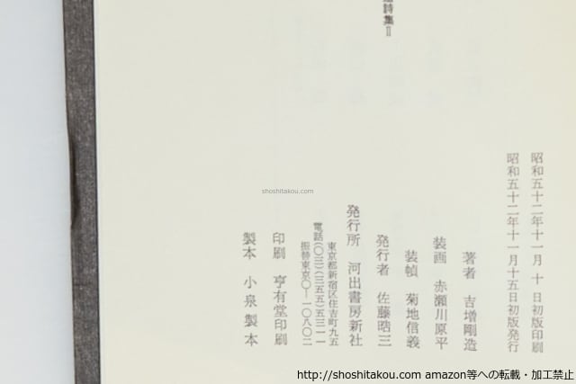 1977 ( 昭和52年 ) 初版・プラケース・別刷付 プラケースにイタミ汚 本冊微ヤケ 河出書房新社 A5判 第二詩集(後版) 並(極美・美・良好・並・並下・難) (目録番号:-)