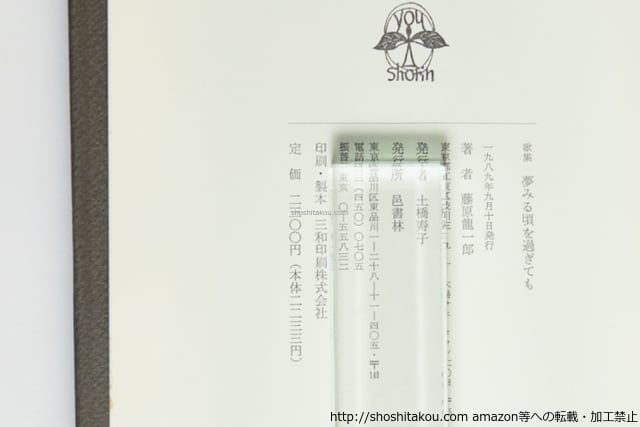 ![歌集 夢みる頃を過ぎても 初カバ帯 / 藤原龍一郎 [39912][良好]](https://baseec-img-mng.akamaized.net/images/item/origin/315dbbf7b80a9a05d685d14bf0cf69cc.jpg?imformat=generic)