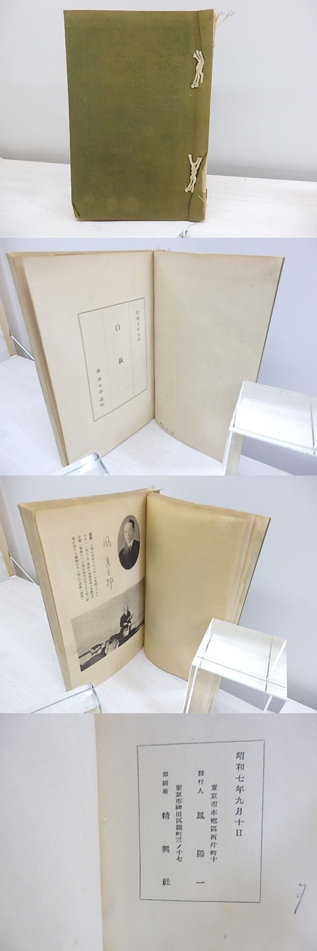 1932 ( 昭和7年 ) 私家版・和装仕立裸本・大学除籍本(見返日付印・口絵裏及天地に印) 除籍証明書類付 題箋欠 角衣裂 正誤表一枚 鳳陽一刊 四六判 遺稿短歌・俳句集 (目録番号:-)