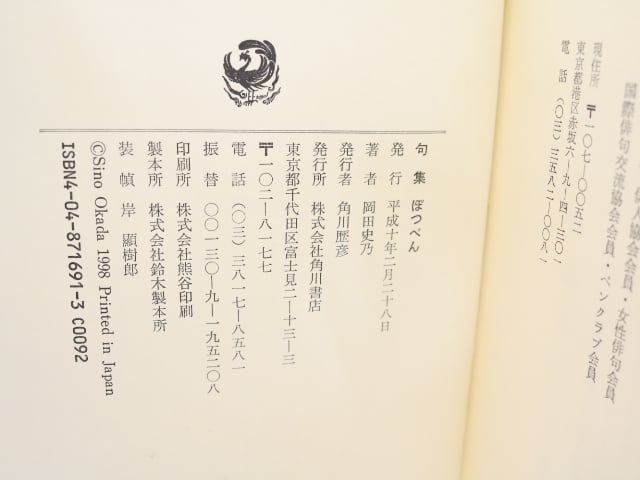1998 ( 平成10年 ) 角川書店 四六判 第三句集 (目録番号:-)