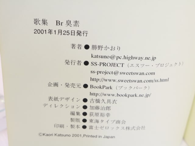 2001 ( 平成13年 ) SS-project Book park A5判 歌葉4 第一歌集 (目録番号:-)
