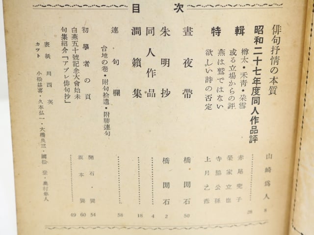 (雑誌)白燕 第5巻第6号 五十号記念特大号 / 橋間石 赤尾兜子 他 川西英表紙 [31893]