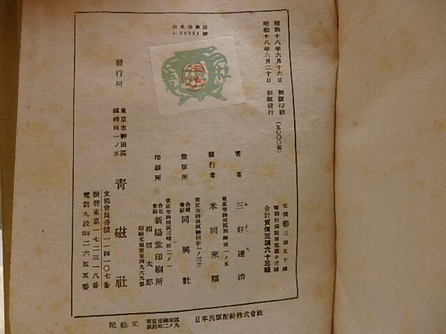 1943 ( 昭和18年 ) 青磁社 A5判 (目録番号:-)