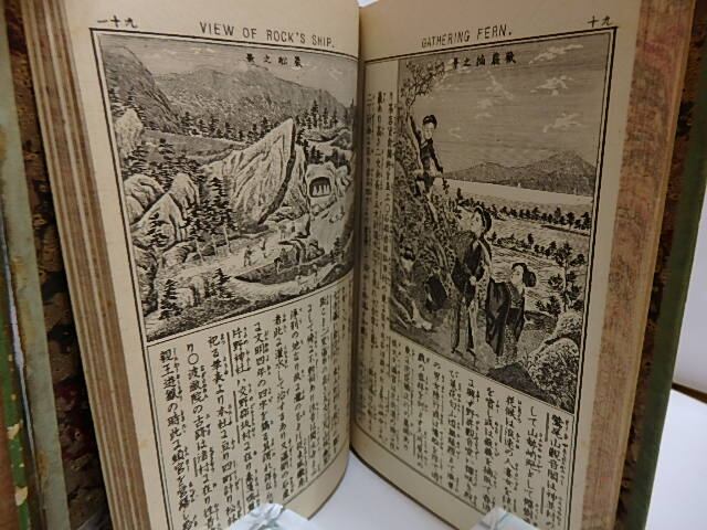 1888-1894 ( 明治21-27年 ) 初・再・初・再・再・初・再(初版明治21-23年・再版明治27年) 本文袋綴銅版刷・三方マーブル染・殆どの頁に名勝図入 4表紙イタミ 5小口汚 他に背・表紙・見返キズ 嵩山堂 小型本 1「五畿内」 2「東海道」 3「東京及近傍名所」 4「東山道」 5「陸前・陸中・陸奥・北海道・北陸道」 6「山陽道・山陰道」 7「南海道・西海道」 (目録番号:-)