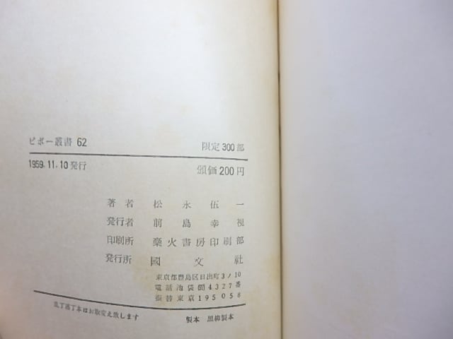 1959 ( 昭和34年 ) 限定300部・初版・カバー ヤケシミスレ 見返ゴム印 国文社 四六判変形 (ピポー叢書, 62) (目録番号:-)