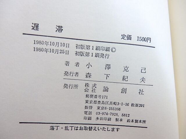 遅滞 小澤克己詩集 署名入 / 小澤克己 [30583]