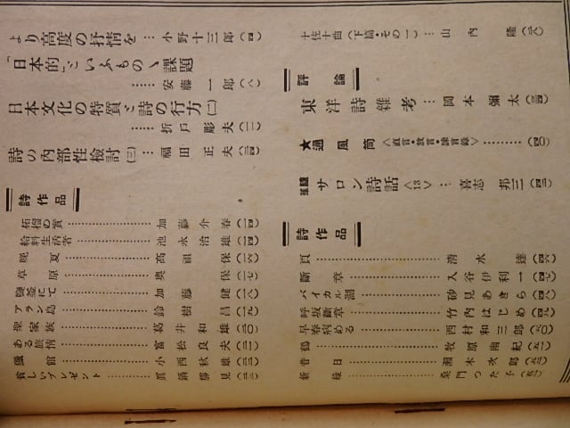 1939 ( 昭和14年 ) 日本詩壇発行所 A5判 折戸彫夫「日本文化の特質と詩の行方2」 岡本弥太「東洋詩雑考」 高祖保「晩夏」 加藤健「塩釜にて」 他 (目録番号:-)