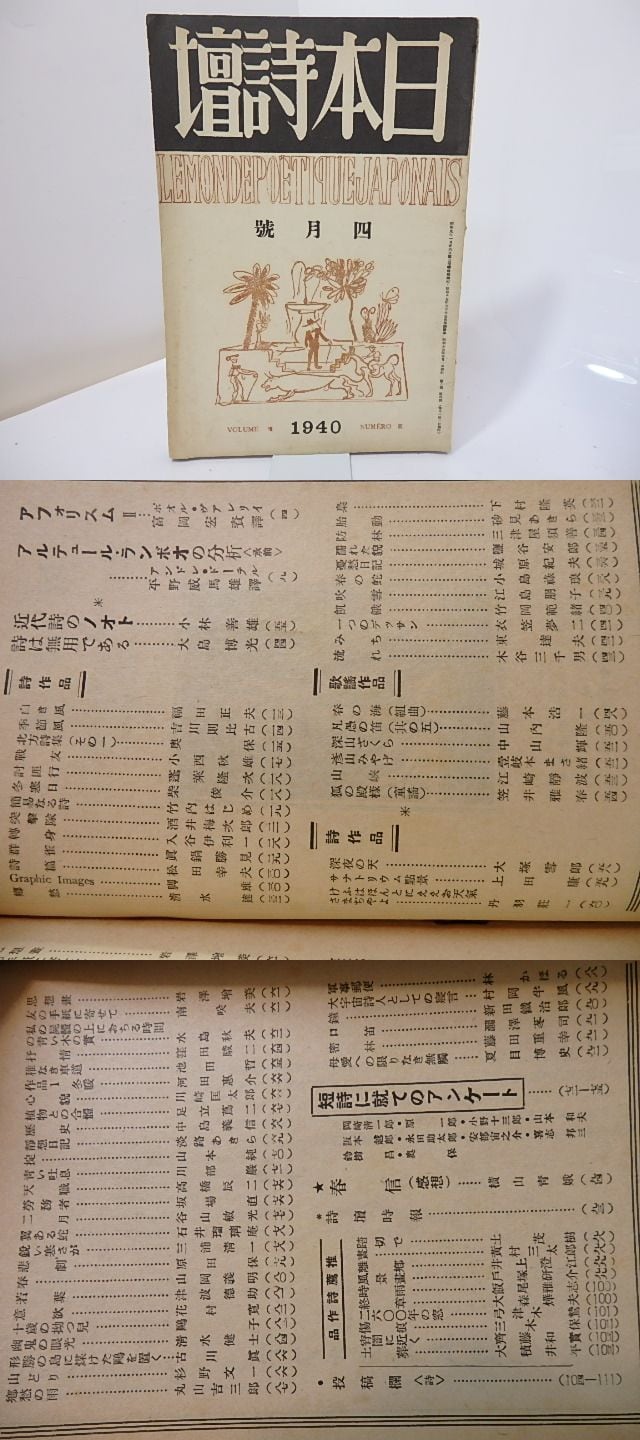 1940 ( 昭和15年 ) 背キズ 他良 日本詩壇発行所 A5判 福田正夫 奥保 塩谷安郎 水島秋夫 大塚雪郎 他    (目録番号:-)