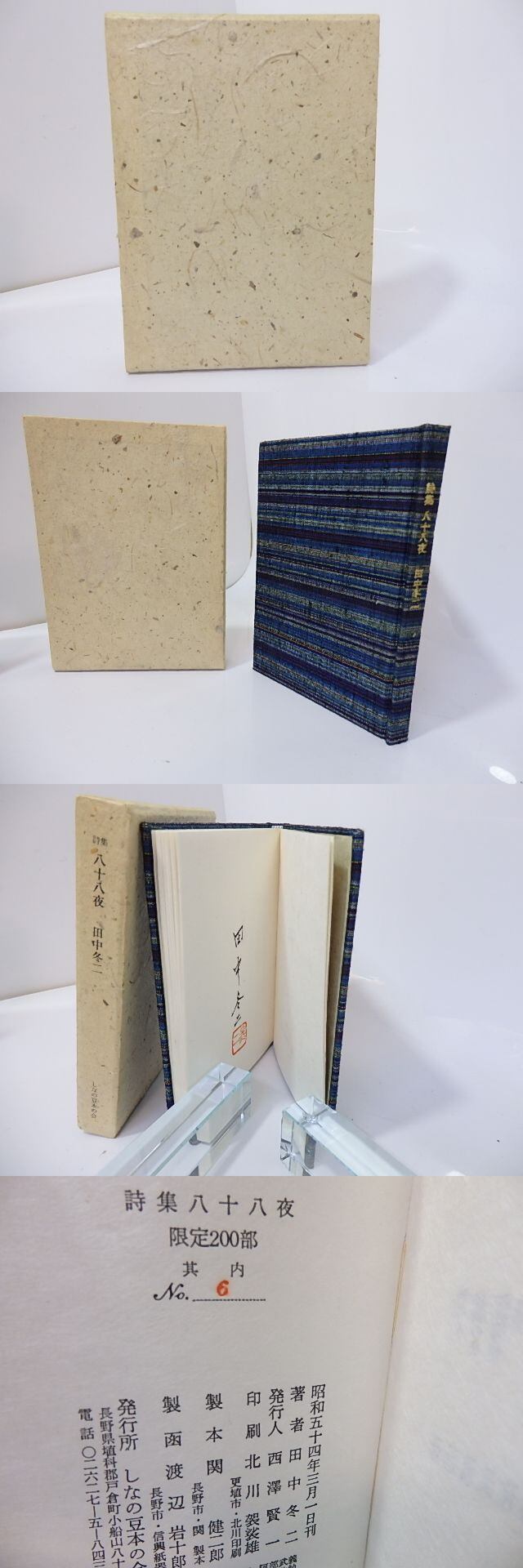 1979 ( 昭和54年 ) 限定200部内6番・塵和紙函・信州上田手織紬表紙・信州内山和紙本文・毛筆署名落款入 美 しなの豆本の会 小型本 (目録番号:-)