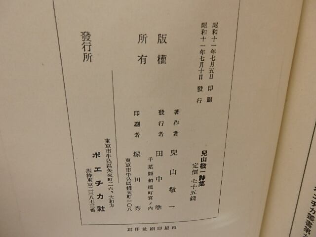 1936 ( 昭和11年 ) 初版 少スレ ポエチカ社 A5判 (ポエチカ叢書, 第9篇) 田中準序    (目録番号:-)