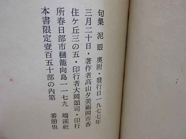 句集 泥眼 限定150部 署名入 / 高山夕美 (秦夕美) [30186]