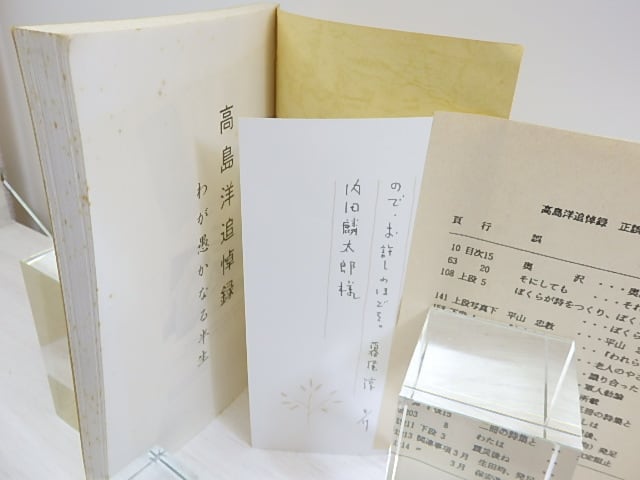 1997 ( 平成9年 ) 高島洋追悼録刊行会(神戸) A5判 詩抄 エセー抄 年譜 追悼 寺島珠雄「高島さんのこと、洋さんのこと」 暮尾淳「原点が存在した」 他 216p (目録番号:-)