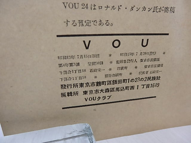 (雑誌)VOU 第一次 23号 / 北園克衛 編 [30404]