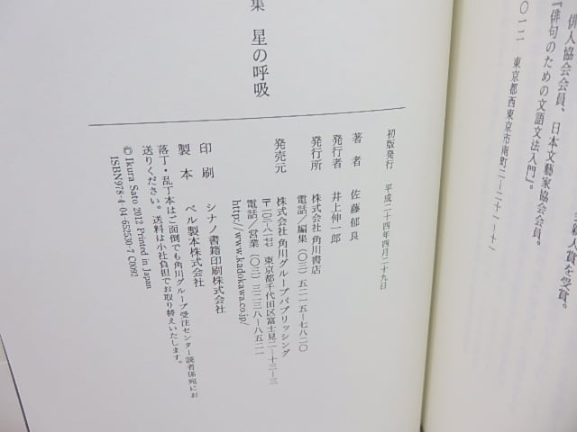 句集 星の呼吸 / 佐藤郁良 [31036]